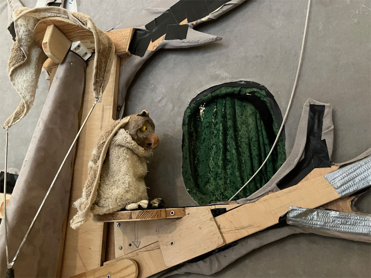 Beim Inszenierungsprozess in der Sanderstraße 26, Kobalt Figurentheater Werkstatt, landet eine meiner Schaufensterfiguren in der Hauptrolle, dem Riesen Grummelpott.